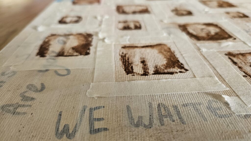 I explore textures with palette knife and brush, layering fragments of paint, scraping and rebuilding, until the surface holds both presence and absence.