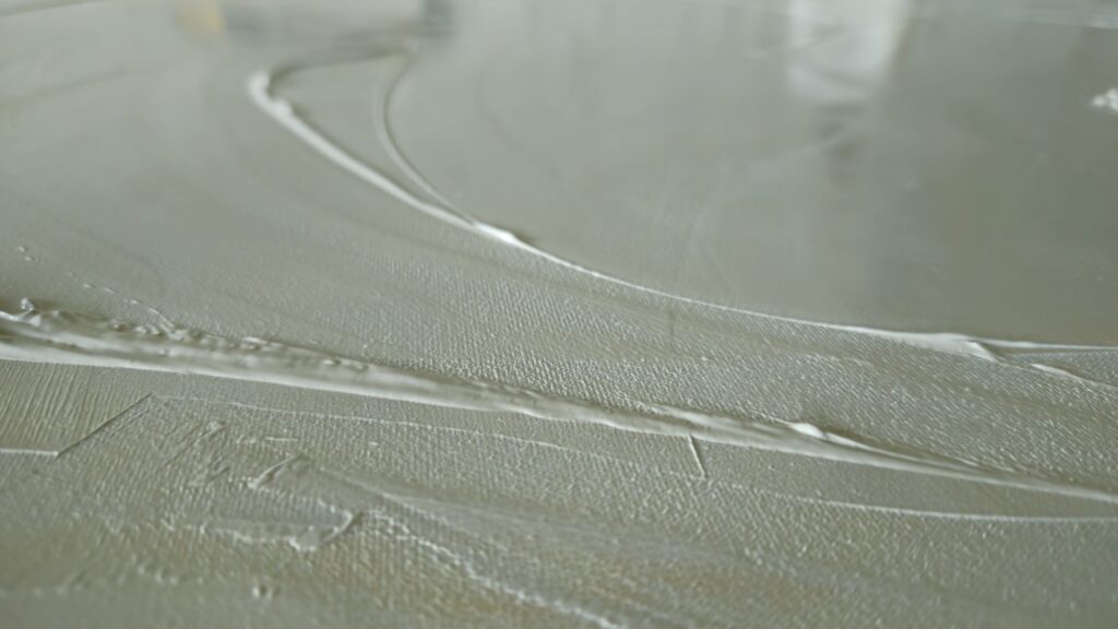 Each work begins in silence — the first gestures of paint on canvas are the foundation of everything that follows.