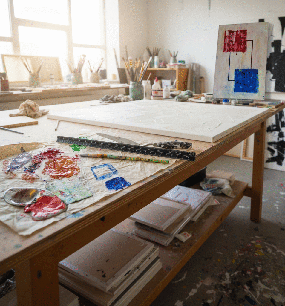 What may appear accidental is often the result of repeated acts of control and release. These early moments are where the work’s character is born. The studio is where the raw elements of inspiration transform into tangible art. It’s a space where initial concepts are carefully measured, accepted, or broken, then boldly layered with thick and rich color, capturing my energy at those specific moments.
